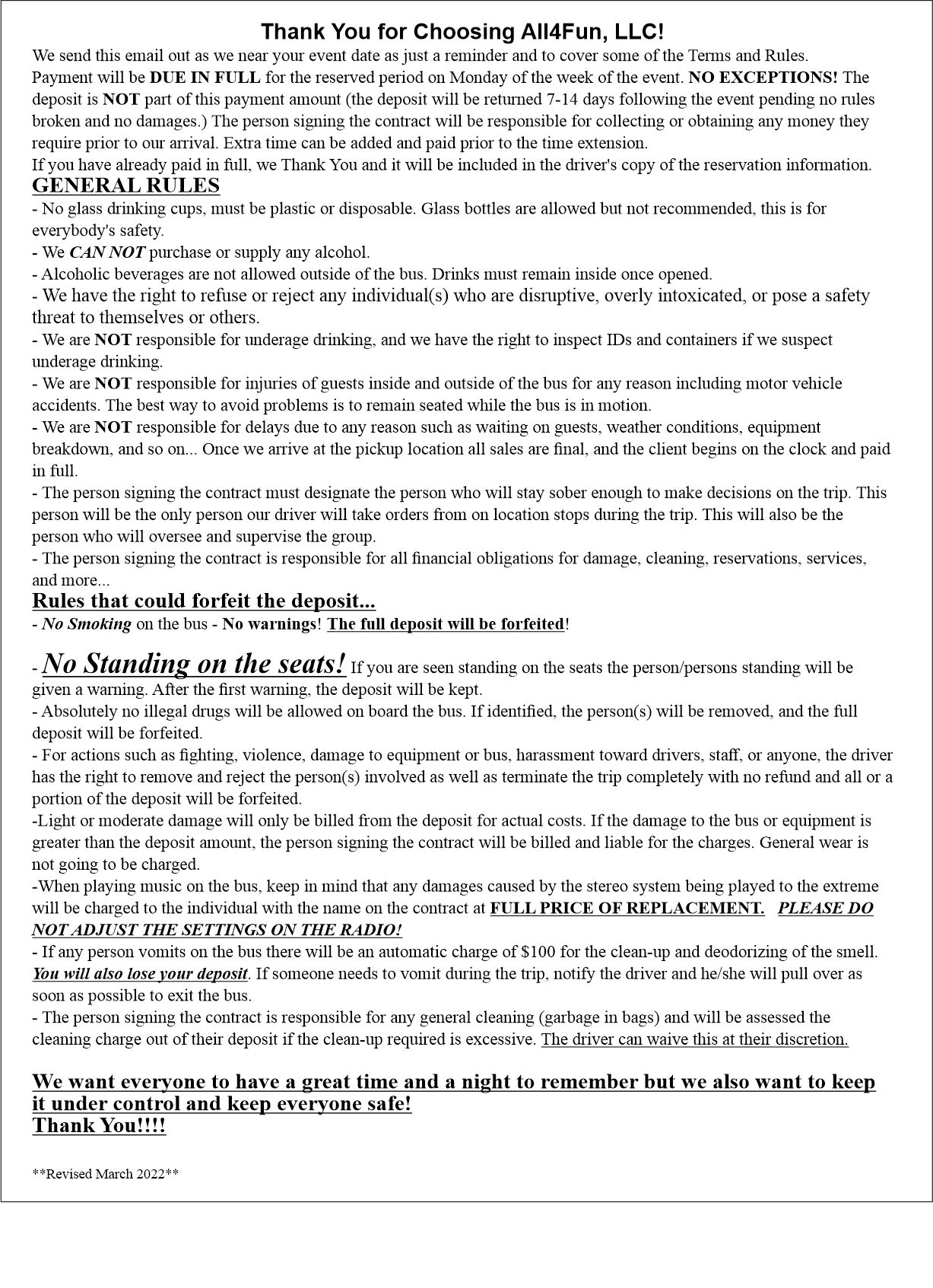 Party Bus Rules